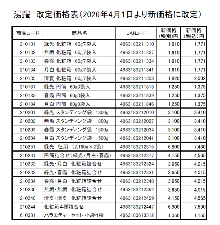 薬用入浴剤 湯躍 新価格表(PDF)